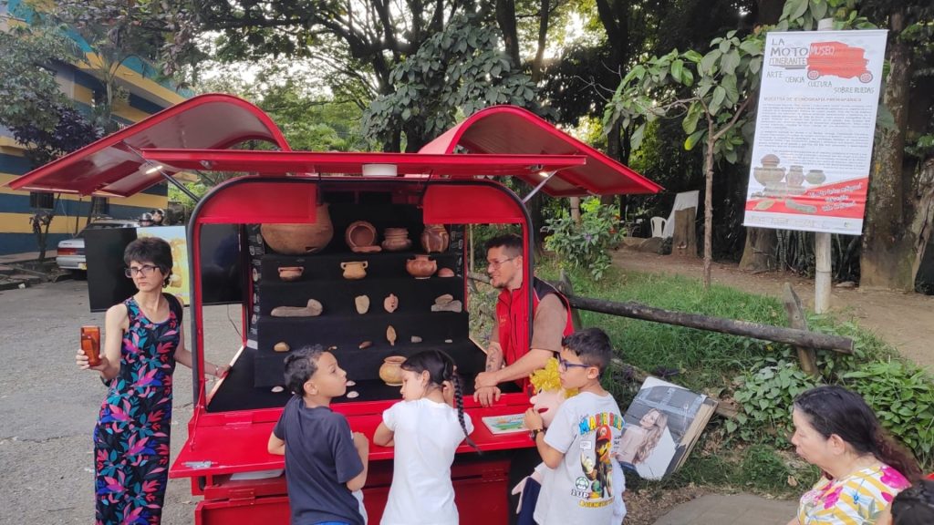 Esa conexión entre arqueología y comunidad también se vive en el motomuseo, que ha llevado a diferentes municipios exposiciones sobre cerámica prehispánica del Valle de Aburrá, pero también campañas de sensibilización.
